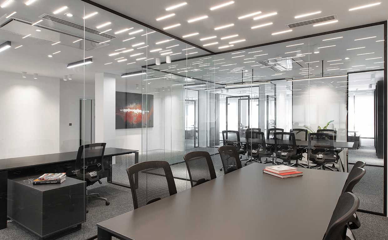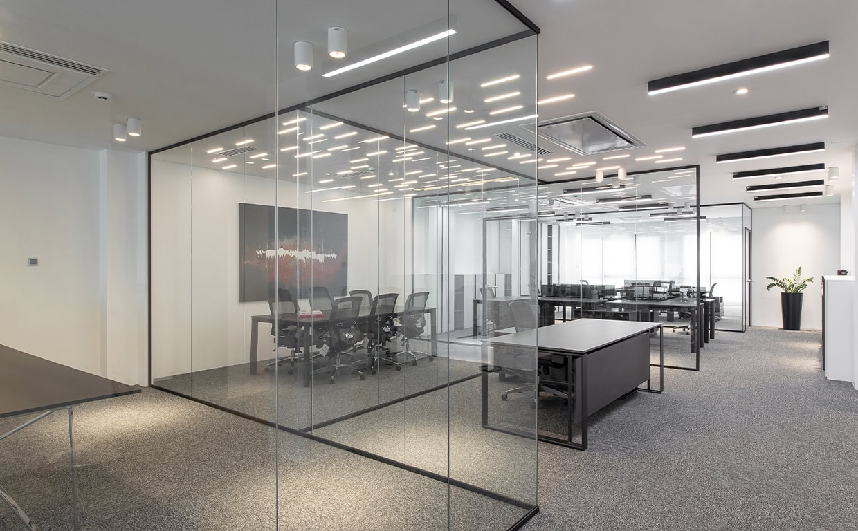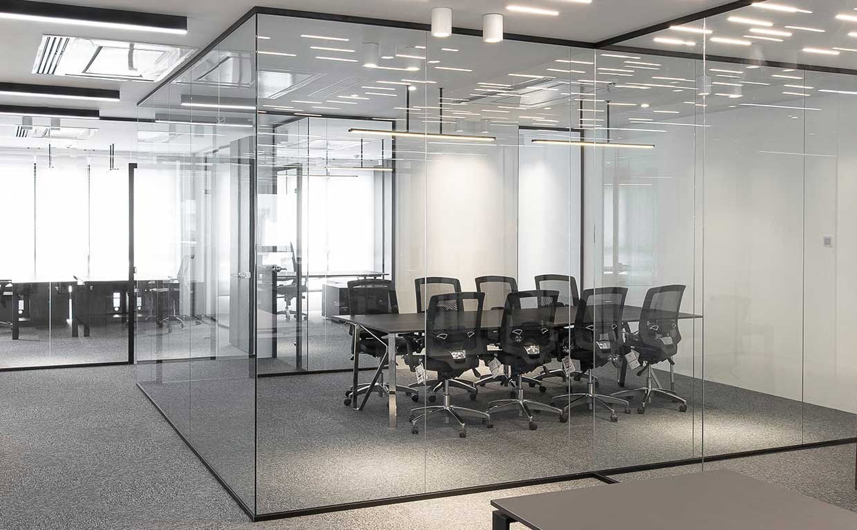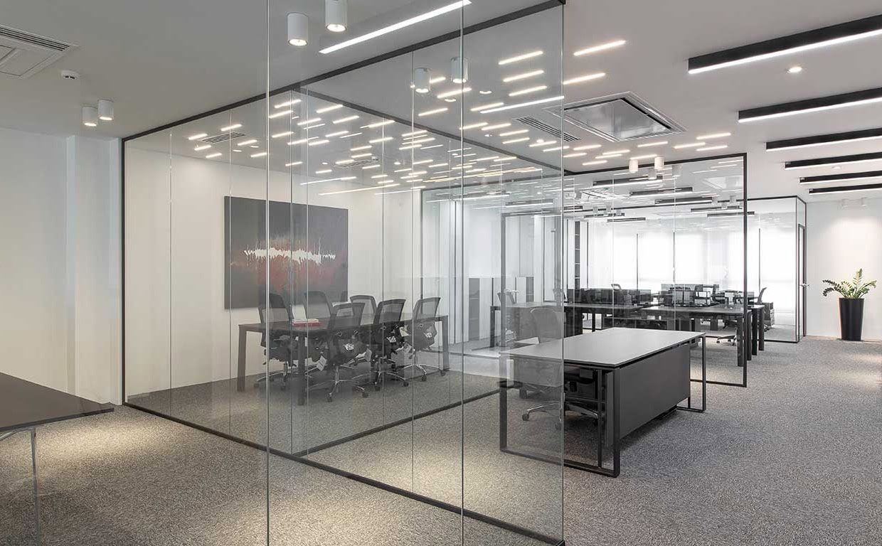 پارتیشن شیشه ای اداری تک جداره فریم لس مدرن