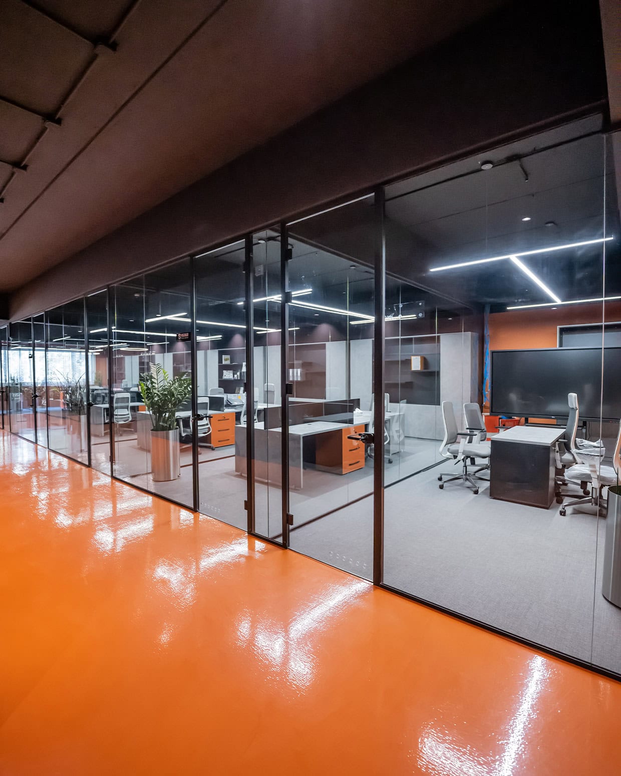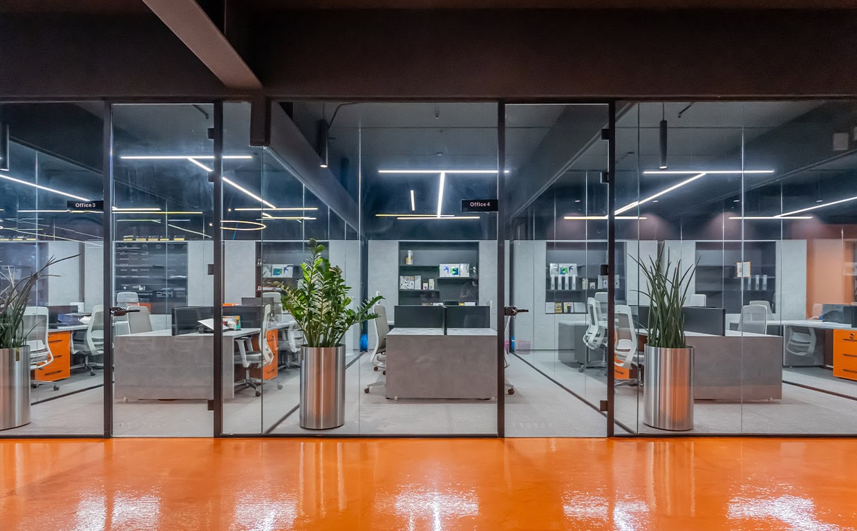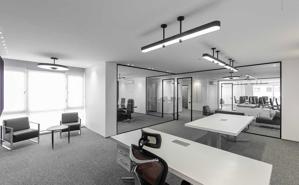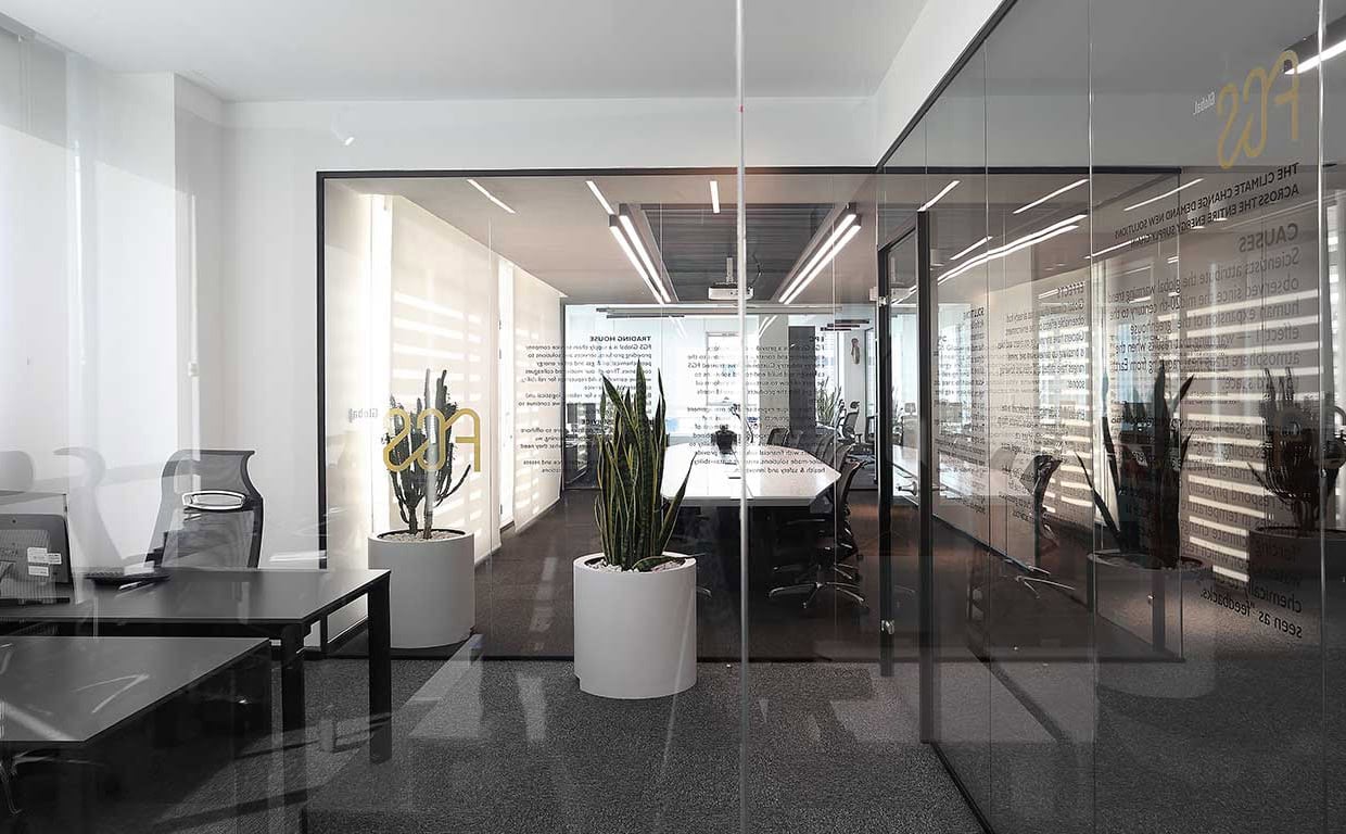 پارتیشن شیشه ای اداری تک جداره فریم لس مدرن